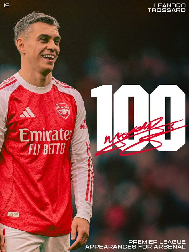 里程碑!特罗萨德迎来在阿森纳的第100场英超比赛